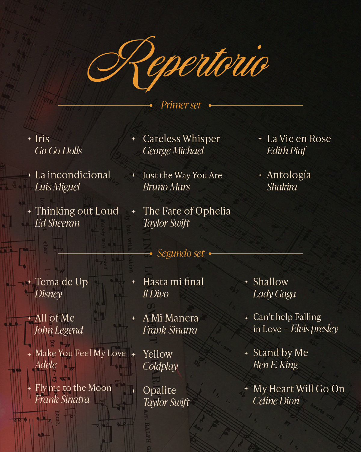 ✨ Un repertorio para escuchar con el corazón, compartir miradas y dejar que cada melodía se convierta en un eco de amor.