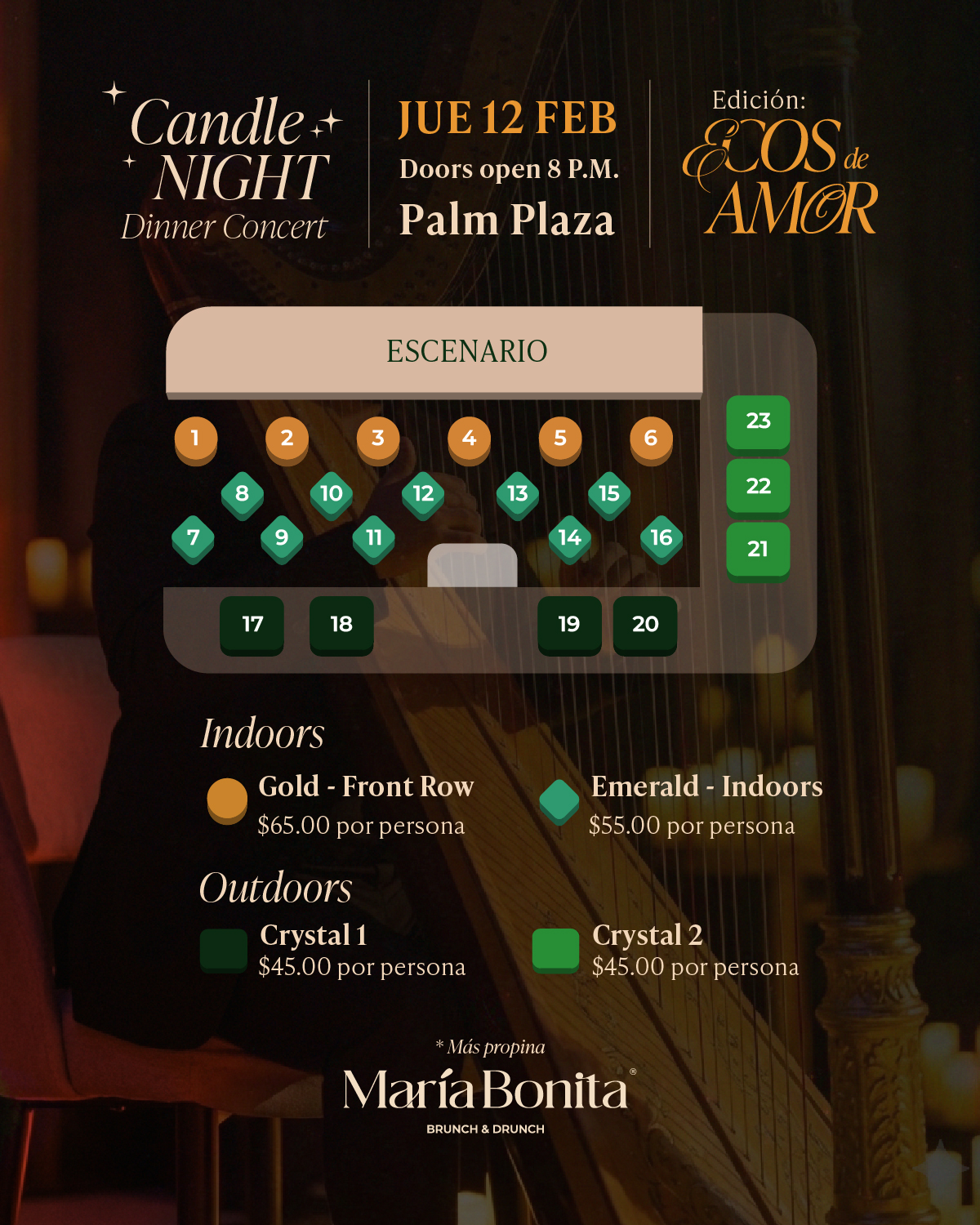 Este febrero, María Bonita te invita a vivir una noche donde la música, la luz de las velas y el amor se convierten en una sola experiencia.