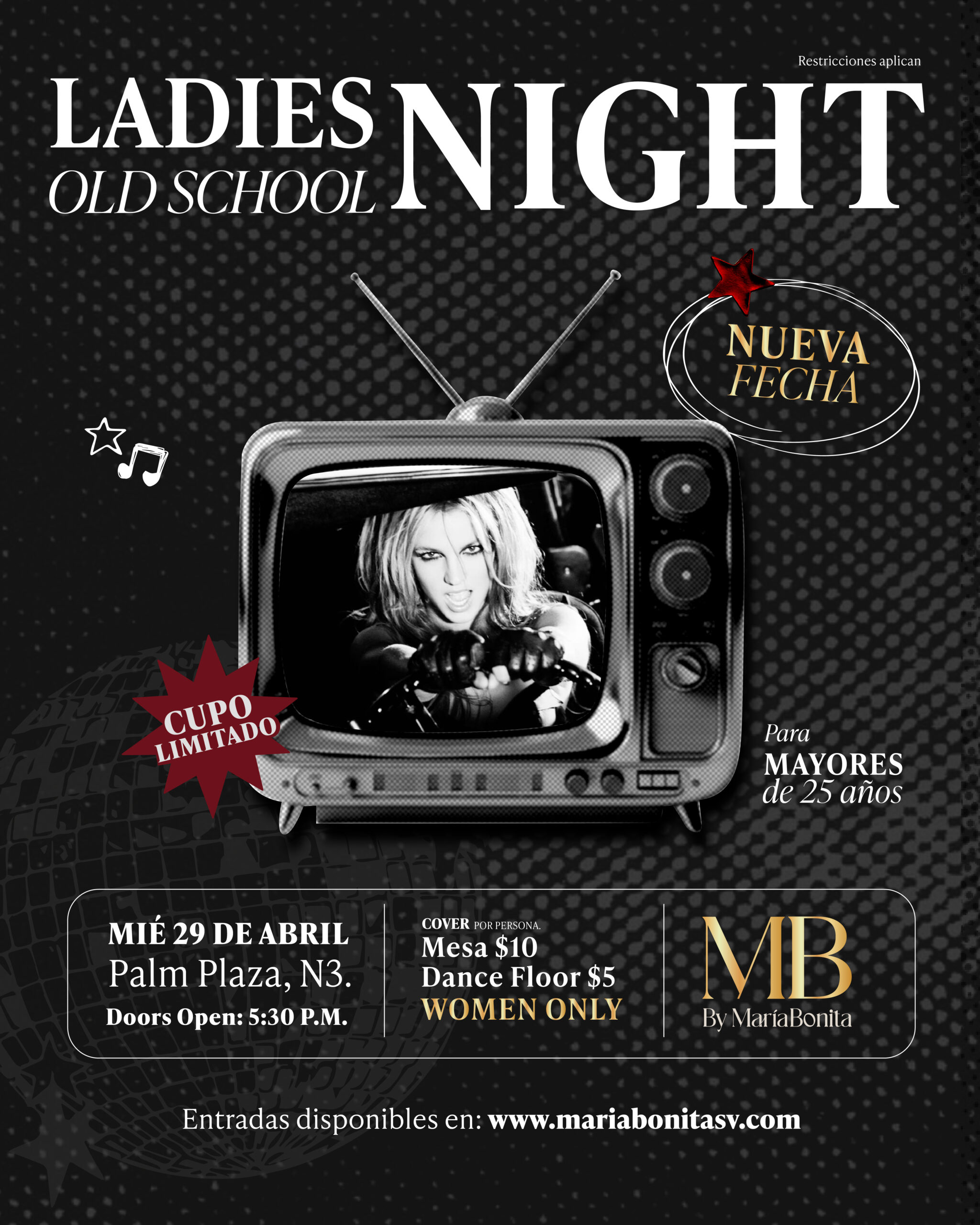 Porque hay canciones que nunca debieron dejar de sonar y momentos que merecen revivirse con estilo, María Bonita trae de vuelta Ladies Night Old School en una nueva fecha y con cupo limitado.